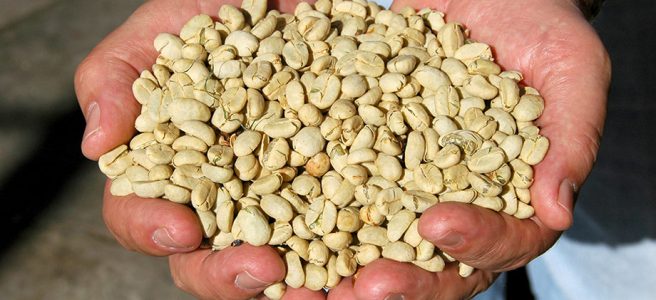 種の周りについているパーチメントとミューシレージを取り除いた状態で、カフェインを除去します。
